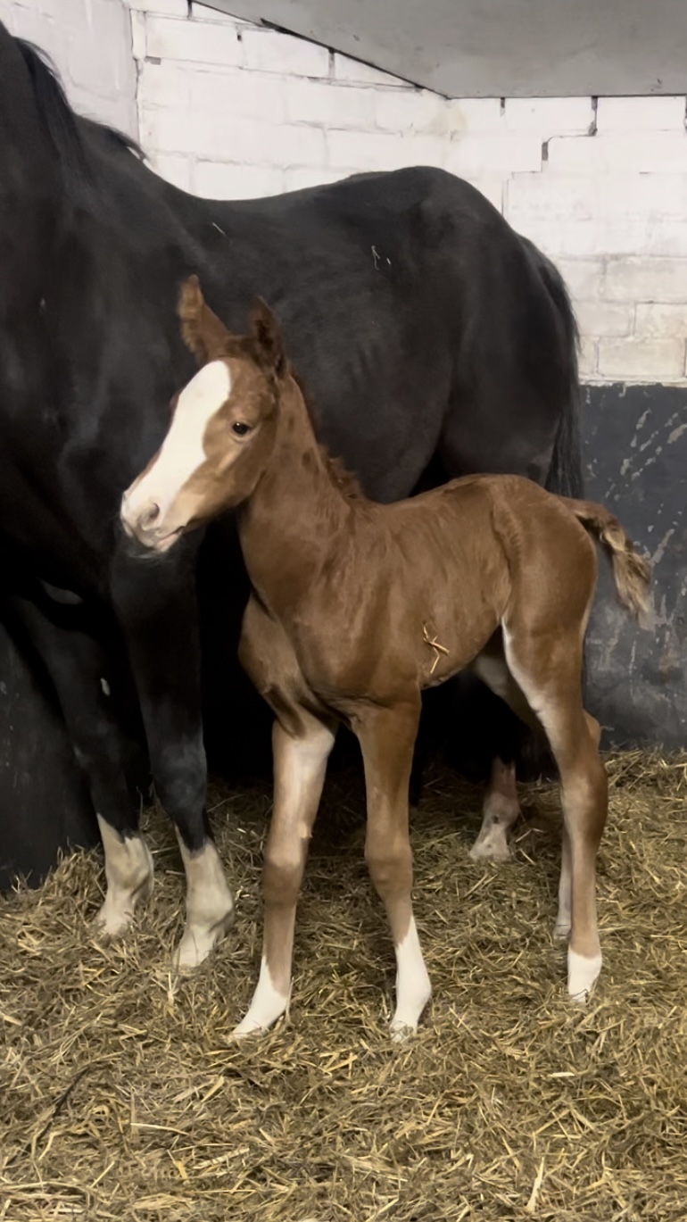 Karamella is out of Mirella, a mare who competed successfully up to 1m40 level. Mirella also produced the mare Encore, who reached 1m50 level together with Kim Emmen. Mirella herself is a half-sister to the 1m60 Grand Prix horse Uno-Cento, who competed with Italian rider Francesca Arioldi.